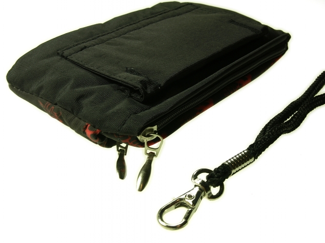 -Součástí pouzdra je i oddělitelná šňůrka na ruku s malou karabinkou. Na zadní straně má ještě velké poutko, které lze využít k uchycení pouzdra za opasek.