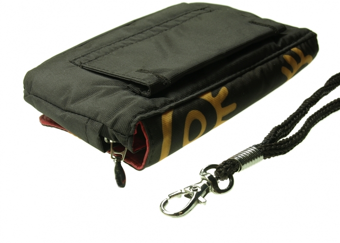 -Součástí pouzdra je i oddělitelná šňůrka na ruku s malou karabinkou. Na zadní straně má ještě velké poutko, které lze využít k uchycení pouzdra za opasek.